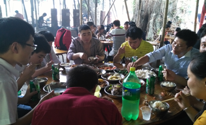 中午,自助野炊粉墨上場,平時裝機調試,玩電腦的手,此時又再次各顯神通,燒火的燒火,洗菜的洗菜,各種食材在通發各路“神仙”的擺弄下,變成一桌桌美味佳肴!香氣四溢,果然集體力量大啊!