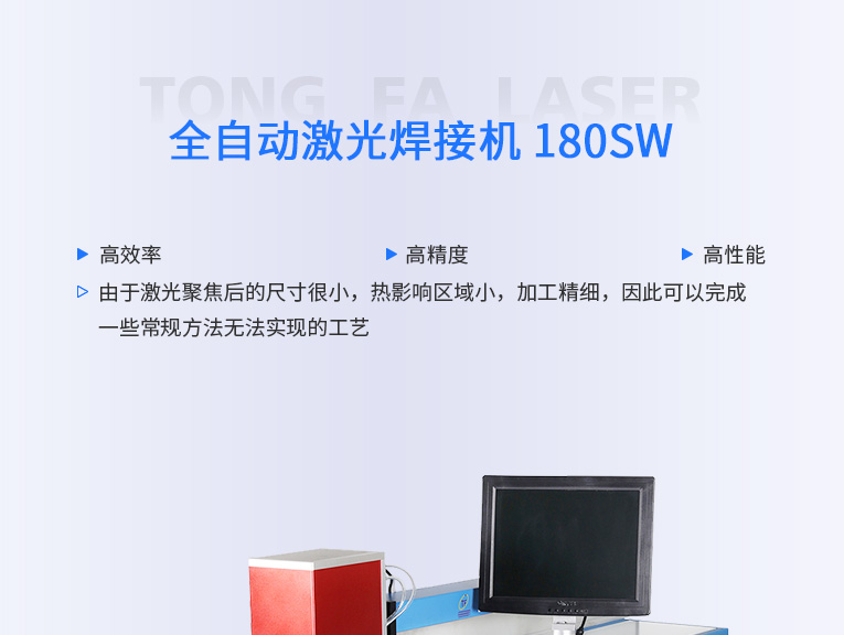 通發激光TFL-180SW振鏡式激光焊接機,采用2軸高速掃描振鏡,焊接速度是工作臺移動的5倍,滿足0.5mm以內料厚不銹鋼多點擊穿疊加焊接,也適用手機五金不銹鋼螺柱高速激光焊接加工。